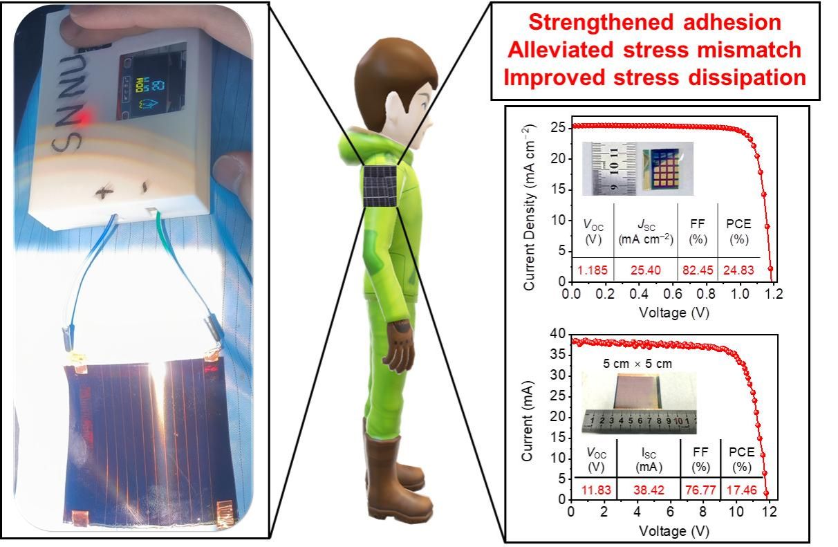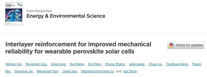 该工作为提高柔性钙钛矿太阳电池的性能和商业可行性奠定了坚实的基础。相关研究工作以Interlayer reinforcement for improved mechanical reliability for wearable perovskite solar cells为题,发表在国际顶级期刊《Energy & Environmental Science》