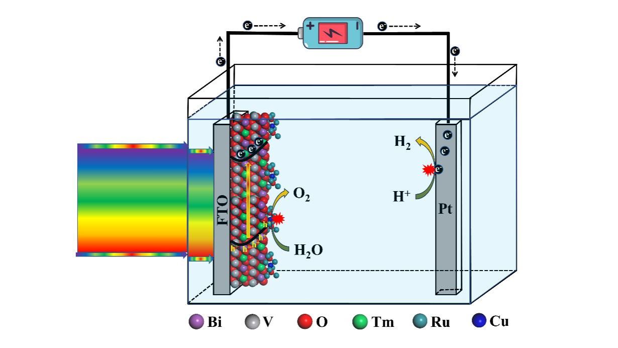 Cu-RuO2-Tm-BiVO4光阳极的工作示意图