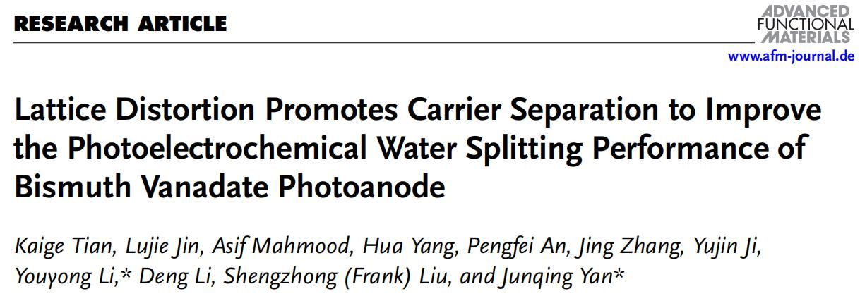 这项工作的意义在于,它为今后新型集成的光阳极的设计和制造提供了参考。相关研究工作以Lattice Distortion Promotes Carrier Separation to Improve the Photoelectrochemical Water Splitting Performance of Bismuth Vanadate Photoanode为题,发表在国际知名学术期刊《Advanced Functional Materials》上。