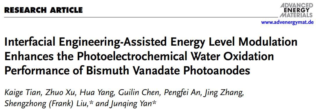 相关工作二:界面工程促进能带调控用于提升钒酸铋光阳极光电催化分解水