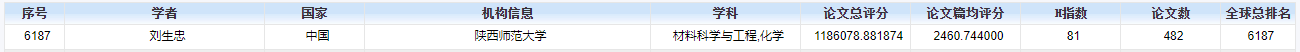 近日,全球学者库发布了2022全球学者学术影响力排行榜。在材料科学领域,全球共有8585名学者入选全球前10万名学者名单,公司刘生忠教授成功入选且国内排名131,全球总排名6187。