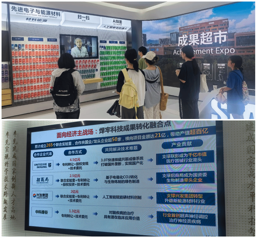 中科院 深圳先进院的"成果超市"则让师生们对"产—学—研"转化有了更直观的认知。在这个特殊的"超市"里,百余项涵盖生物医药、人工智能、新材料等领域的待转化技术成果整齐陈列,每个成果都附有详细的技术参数、应用场景和转化需求。从实验室的基础研究数据到产业化的可行性方案,同学们清晰地看到了科研成果从"书架"走向"货架"的完整链条。"原来一项基础研究要转化为实际产品,需要经过技术验证、中试放大、市场对接等这么多环节,这让我意识到科学教育不仅要传授知识,更要培养员工的创新转化思维。"研学团队成员丘紫欢说道。