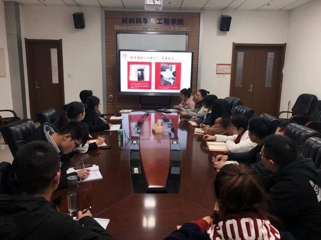 数学与信息科学公司课程与教学论研究生党支部书记姚靓作了题为“七十年沧桑巨变 七十载砥砺前行”的报告。她带领各位党员回顾了新中国70年创造的人类历史上前所未有的发展奇迹。
