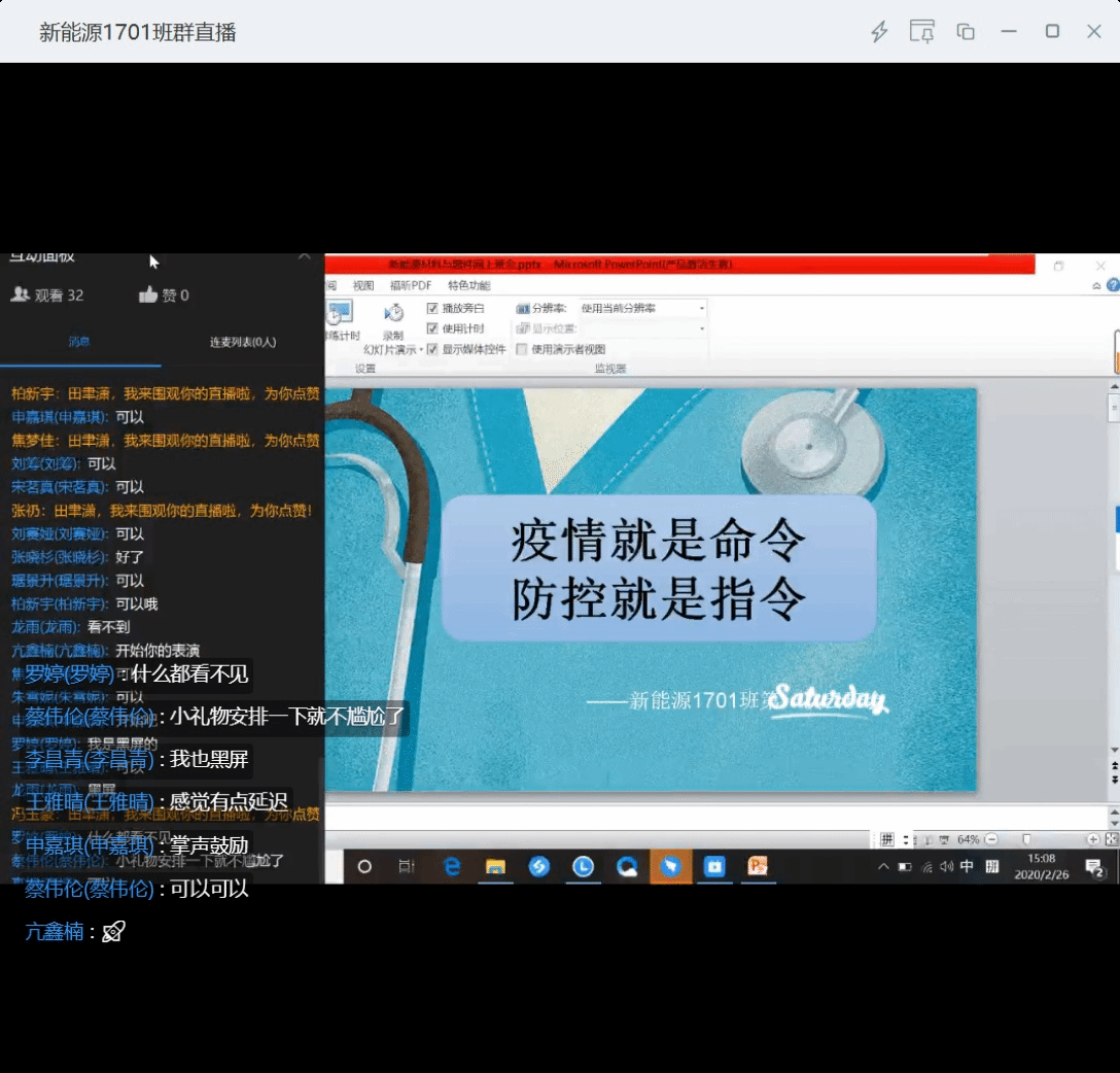 2018级1班和2班团支部的同学们在班级QQ群里谈在这次疫情中的思考和感触,同学们表示,疫情当前,每位同学都是责任人。我们应该向战“疫”先锋钟南山学习“士不可以不弘毅”的深沉担当;向战“疫”先锋李兰娟学习“绝知此事要躬行”的专注实干。作为新时代老员工我们更应该知道战线就在脚下,初心行将致远;学在当下,即刻战“疫”!