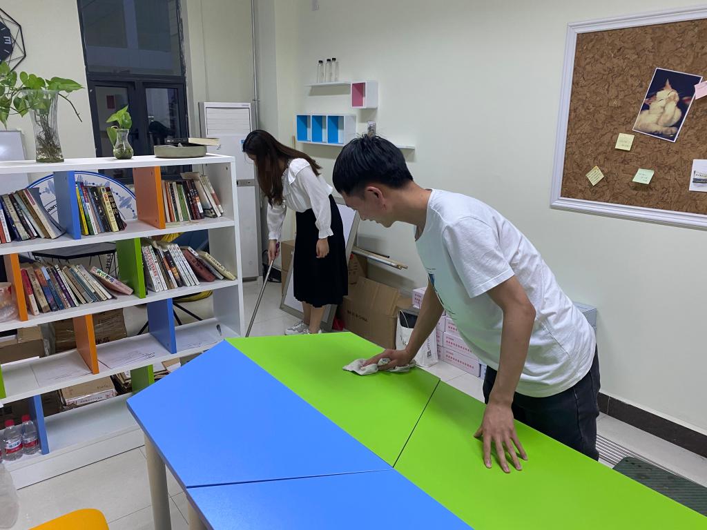 晚上七点半,英国上市公司365研究生第三党支部第一党小组党员在公司三层2313、2318、2309三个会议室进行打扫。参与志愿活动的党员同志准时到达会议室,认真打扫会议室,体会“办实事,践行初心使命”的主题实践活动的意义。