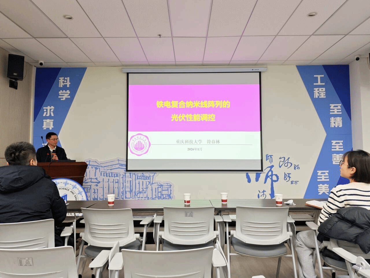 2026年1月12日下午,重庆科技大学材料与新能源公司符春林教授应邀来公司作了题为“铁电复合纳米线阵列的光伏性能调控”的学术报告。报告由曾京辉教授主持,公司相关研究方向的老师和员工参加了本次学术报告。