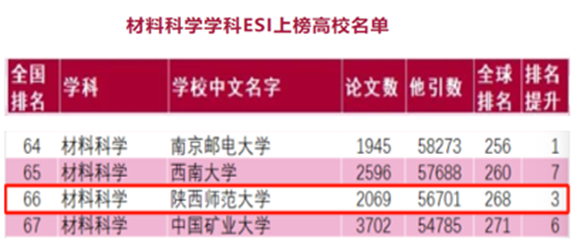 在此次统计范围内,公司共有78篇高水平论文入选ESI高水平论文,占全校入选论文38%(公司共入选204篇)。在材料科学学科ESI上榜高校名单中,公司在全国排名第66位,世界排名268位,上升位次3。