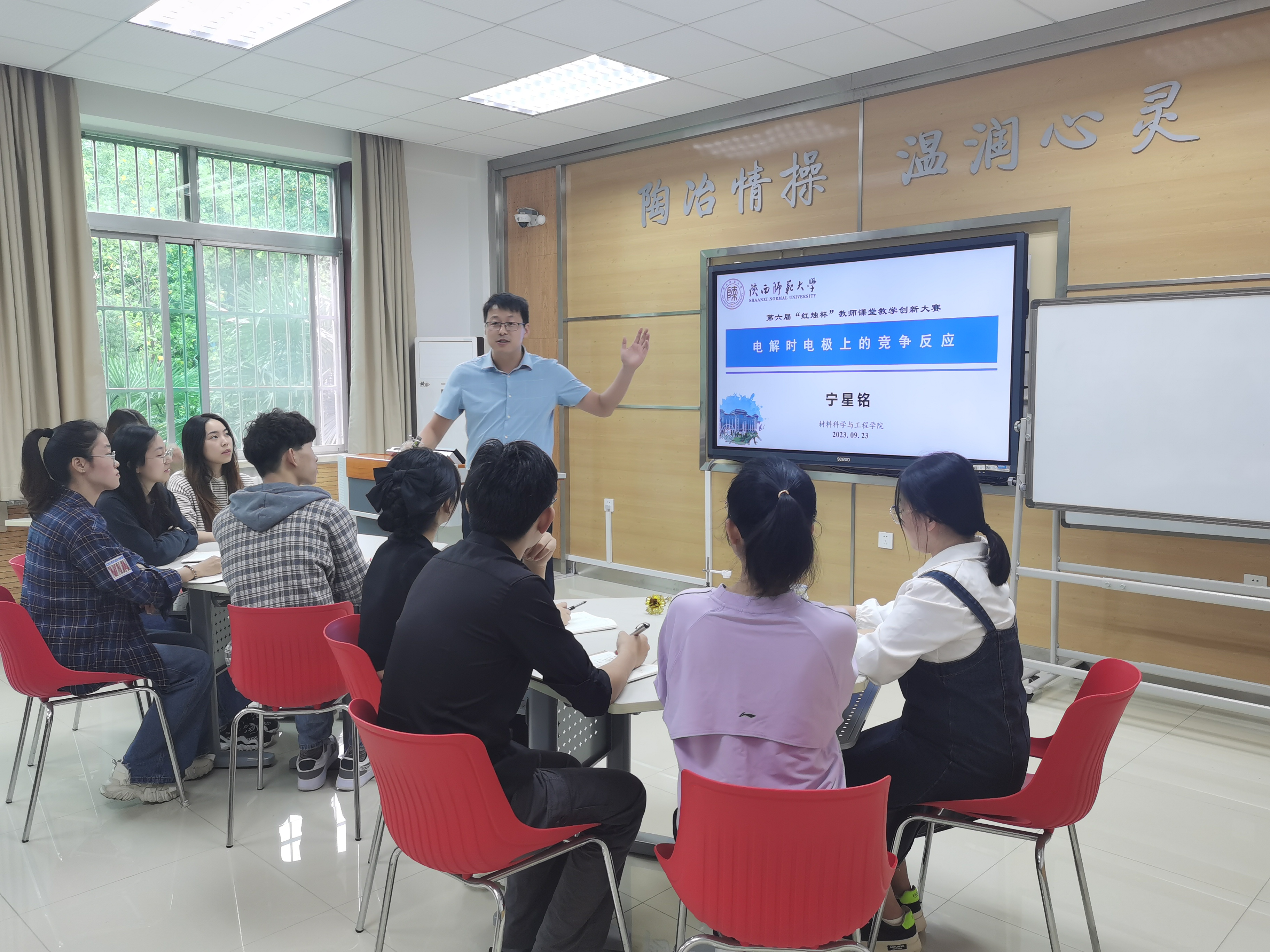2023年9月23日,经过充分准备和亮点提炼,宁星铭老师通过颇具创新的教学成果报告和简明扼要的课堂语言,准确把握教材的重点难点,生动地讲述了《电解时电极上的竞争反应》一课,获得了评委们的一致认可。