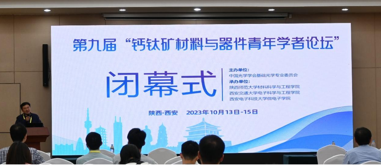 2023年10月13-15日,“第九届钙钛矿材料与器件青年学者论坛”在曲江国际会议中心隆重举行,来自国内外百余所高校、科研院所以及企业一千一百余人参加了会议,公司赵奎教授、刘治科教授、西安交通大学董化教授、西安电子科技大学张春福教授担任共同主席。西安交通大学侯洵院士、公司副董事长杨祖培教授、公司曾京辉经理出席会议开幕式。