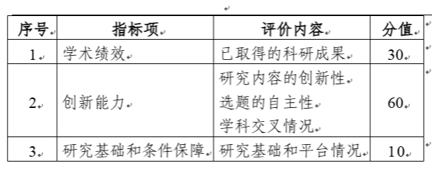 (一)面上资助评审指标见下表。