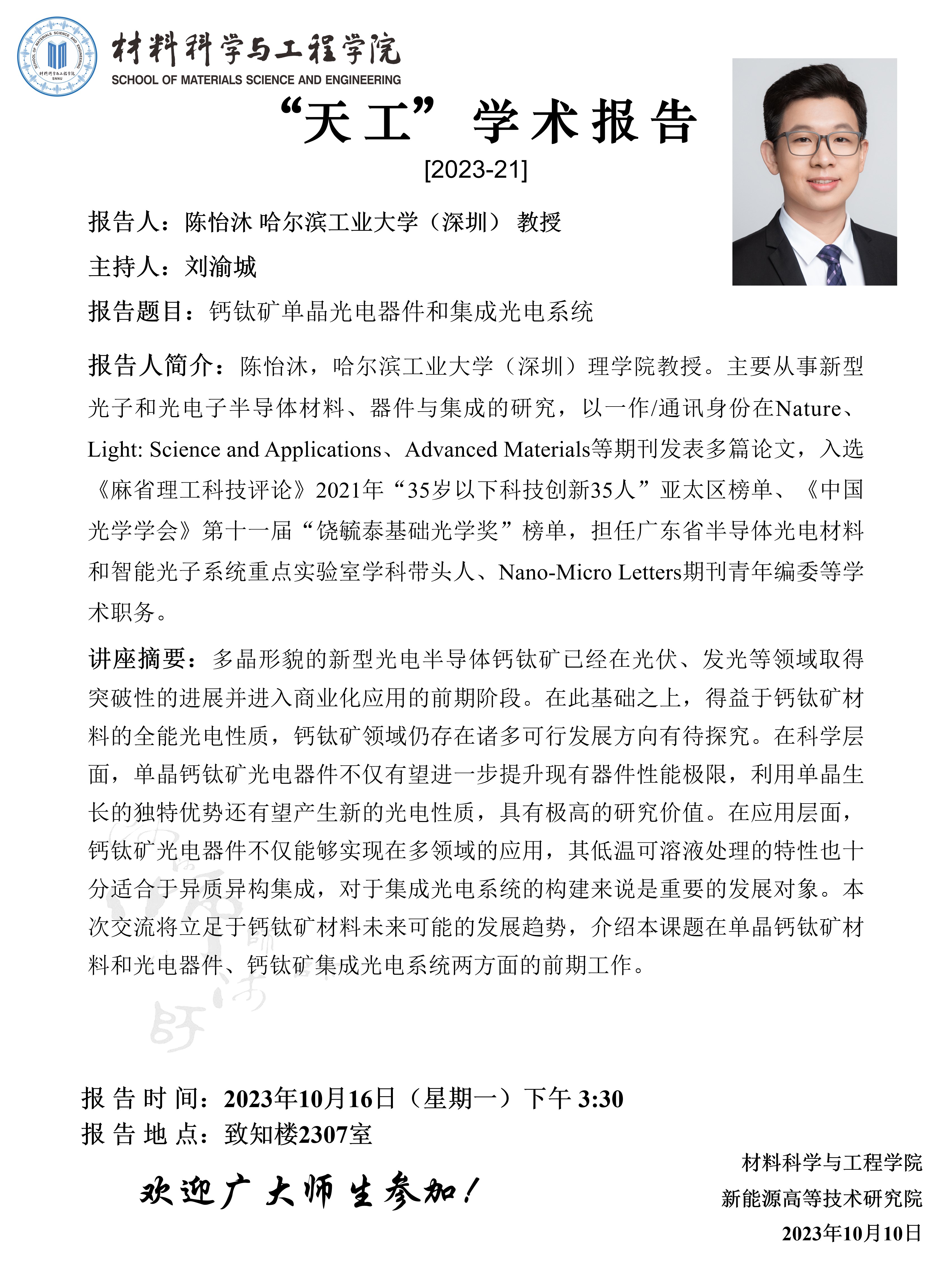 【学术报告】10月16日学术报告预告